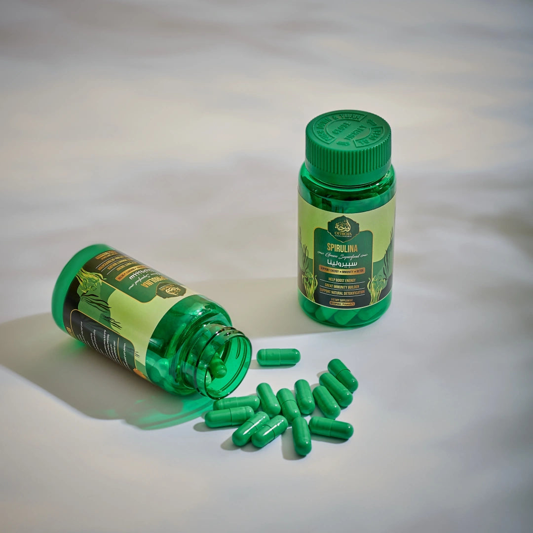 كبسولات السبيرولينا من أترجة هي مكمّل غذائي طبيعي فائق الجودة مستخلص من طحالب السبيرولينا الغنية بالبروتينات، الفيتامينات، والمعادن الأساسية.