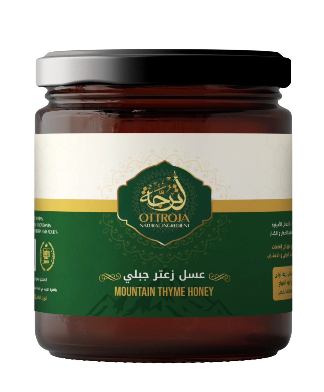 Ottroja Natural Mountain Thyme Honey is one of the rarest and finest types of honey, produced from the nectar of pure wild thyme flowers that grow in high mountain regions. It is distinguished by its amber-golden color and rich, aromatic flavor, known for its superior quality and numerous health benefits, including supporting immunity, improving digestion, and boosting energy. Ottroja Natural Mountain Thyme Honey is the perfect choice for honey lovers seeking an authentic taste and unmatched natural excellence.
